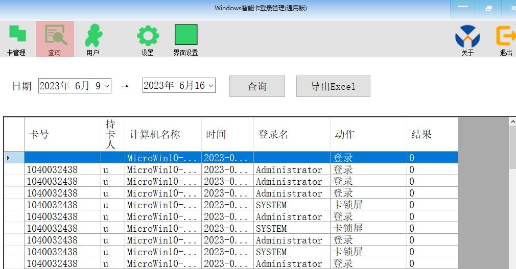 4. 點擊查詢按鈕進(jìn)入登錄記錄查詢界面