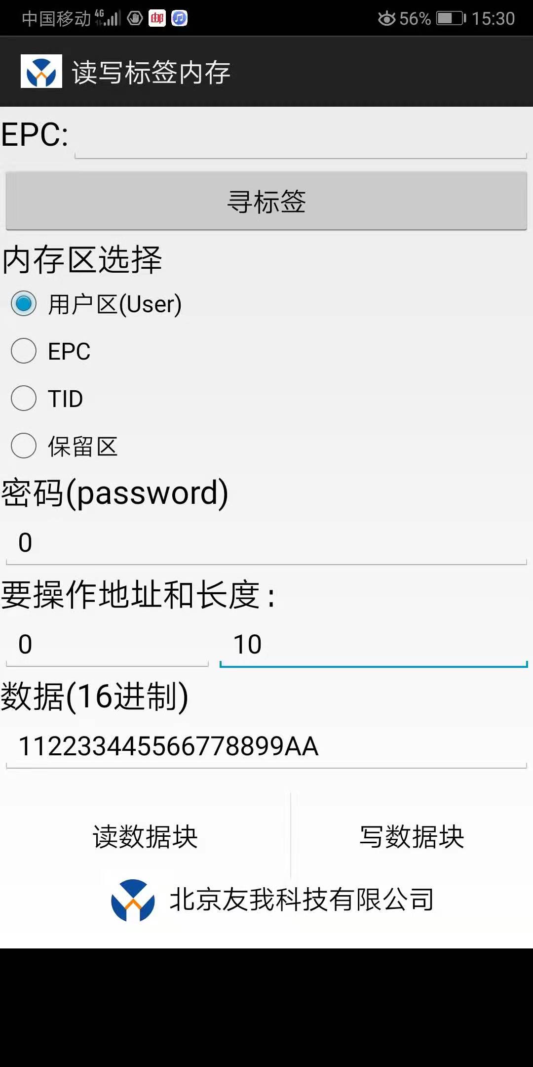 讀UHF電子標(biāo)簽的內(nèi)存區(qū),參數(shù)如下: