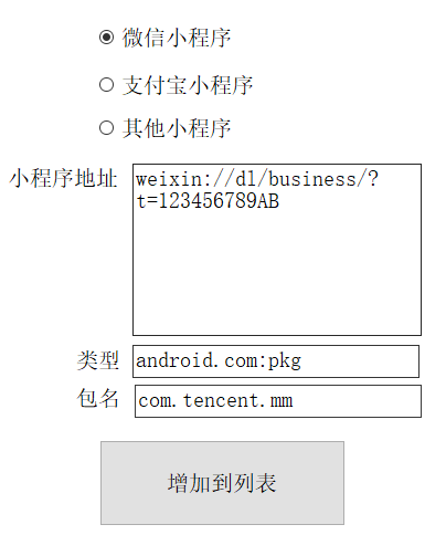 NFC工具提供了包括微信小程序,支付寶小程序和其他的小程序的寫(xiě)入格式,其中微信小程序和支付寶小程序的包名和類型已經(jīng)寫(xiě)好,只需要修改小程序地址即可。