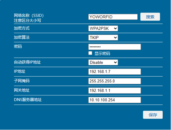 在網(wǎng)絡(luò)名稱處點擊搜索選擇要連接的wifi名稱,輸入對應(yīng)的密碼。IP地址為在當前wifi下的IP,默認為192.168.1.7,端口號碼默認 23。