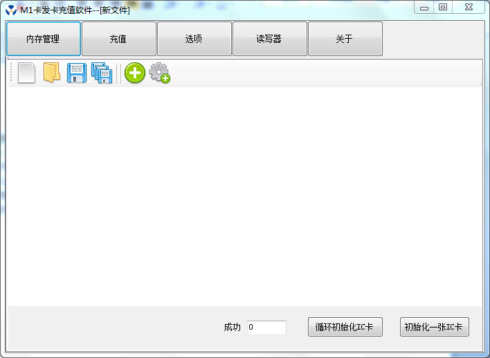 主界面功能主要分為IC卡內(nèi)存管理,充值,選項,讀寫器,關(guān)于 共5個部分。